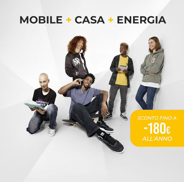 Attiva un’offerta Mobile insieme ad un’offerta Casa e a Energia Flat, ottieni uno sconto fino a 180 € all'anno e giga illimitati sull'offerta Mobile.